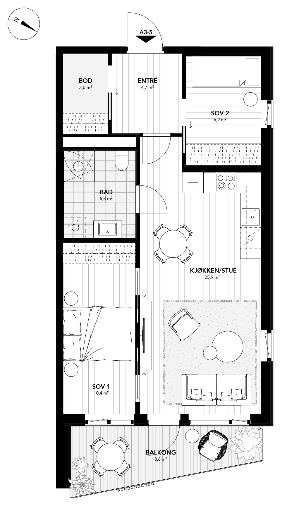 Stor og prisgunstig 3-roms hjørneleilighet med privat balkong mot sør, to soverom og innvendig bod. Stue / kjøkken med vinduer på to sider som sikrer godt med naturlig lysinnslipp. Egen bod i kjeller.