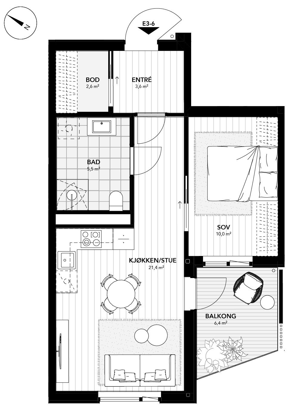 Praktisk og prisgunstig 2-roms leilighet med god planløsning. Stort soverom med plass til garderobe. Romslig bad. Fjordutsikt fra balkong og fra stuevinduet. Innvendig bod i tilknytning til entré. Egen bod i kjeller