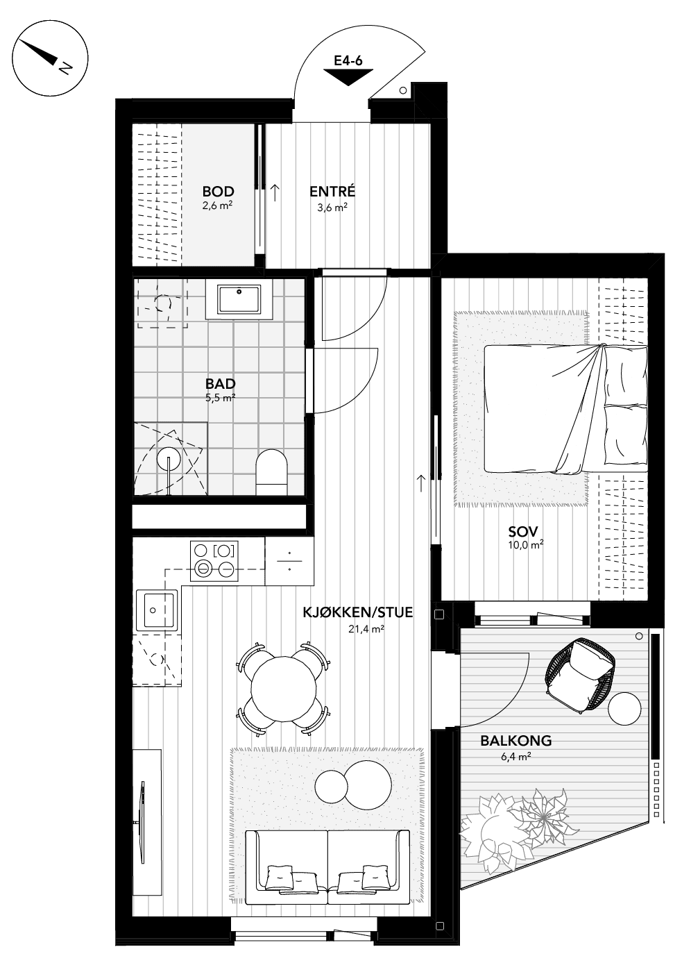 Praktisk og prisgunstig 2-roms leilighet med god planløsning. Stort soverom med plass til garderobe. Romslig bad. Fjordutsikt fra balkong og fra stuevinduet. Innvendig bod i tilknytning til entré. Egen bod i kjeller