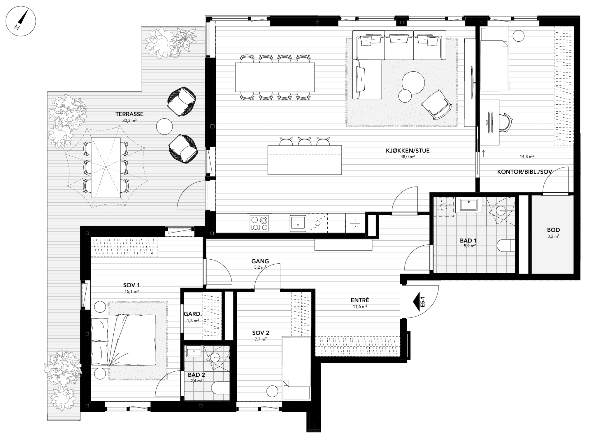 Unik toppleilighet med ca. 30 kvm takterrasse (delvis takoverbygd) med panoramautsikt over fjorden. Romslig og praktisk inngangsparti. Egen avdelt hovedsoveromsavdeling hvor hovedsoverommet har direkte tilgang til eget bad. To gjestesoverom der det ene rommet egner seg godt til hjemmekontor / bibliotek etc. Store vindusoverflater i stue som sikrer mye naturlig lysinnslipp mot den flotte fjordutsikten! Egen bod i kjeller.