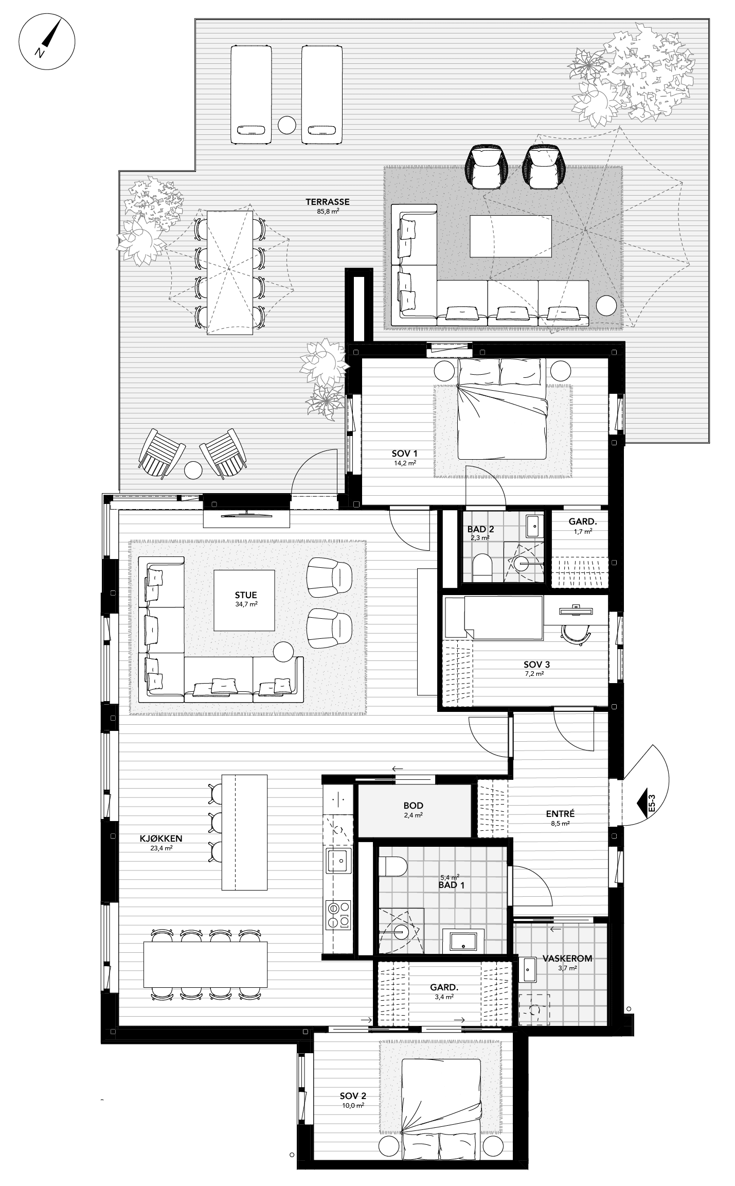 Den største toppleiligheten på Vikhammerstrand! Ca. 85 kvm takterrasse med panoramautsikt over fjorden, delvis takoverbygd. 2 bad, hvor det ene badet er tilknyttet hovedsoverommet. Eget vaskerom. To gjestesoverom der det ene rommet egner seg godt til hjemmekontor / bibliotek etc. Romslig stue / kjøkken løsning med store vindusoverflater som sikrer mye naturlig lysinnslipp mot den flotte fjordutsikten! Egen bod i kjeller.